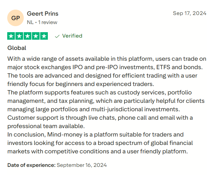 Отзывы подчеркивают, что Mind Money подходит как для начинающих инвесторов, которые делают первые шаги, так и для опытных профессионалов, заинтересованных в доступе к сложным продуктам. Такой универсальный подход делает компанию востребованной среди разных категорий клиентов.